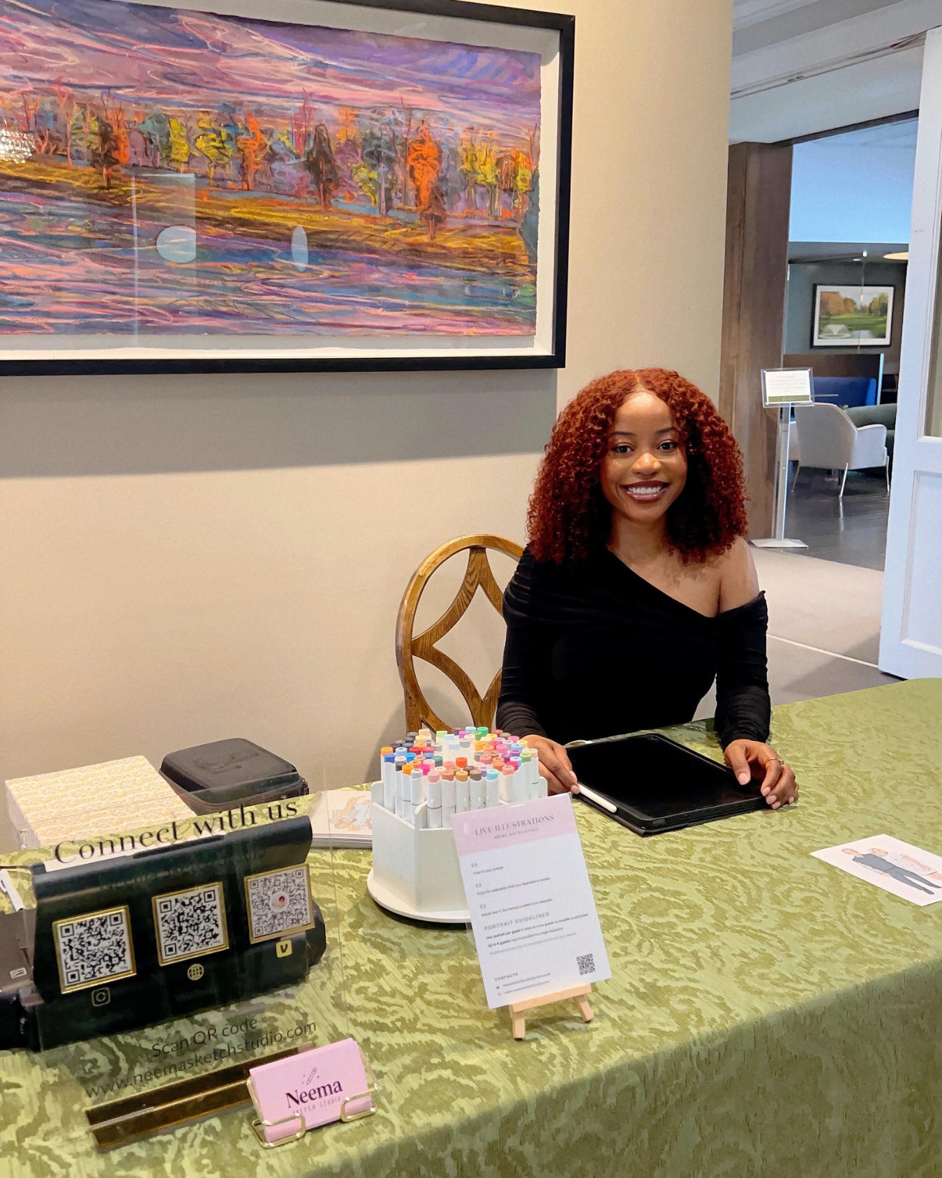 Neema is a live fashion illustrator specializing in luxury weddings, galas, and brand events across the U.S. and abroad. Her work captures the elegance of high fashion with the emotion of fine art, transforming fleeting moments into timeless heirlooms.